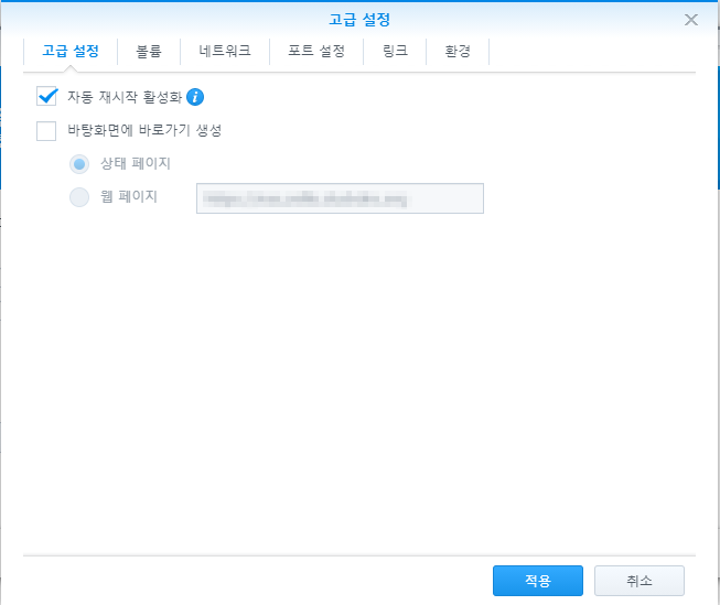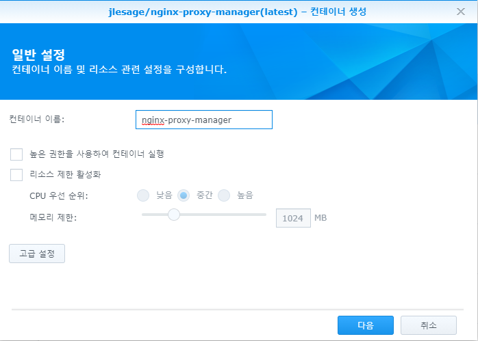 컨테이너 이름은 편한것으로..... 고급설정 눌러서