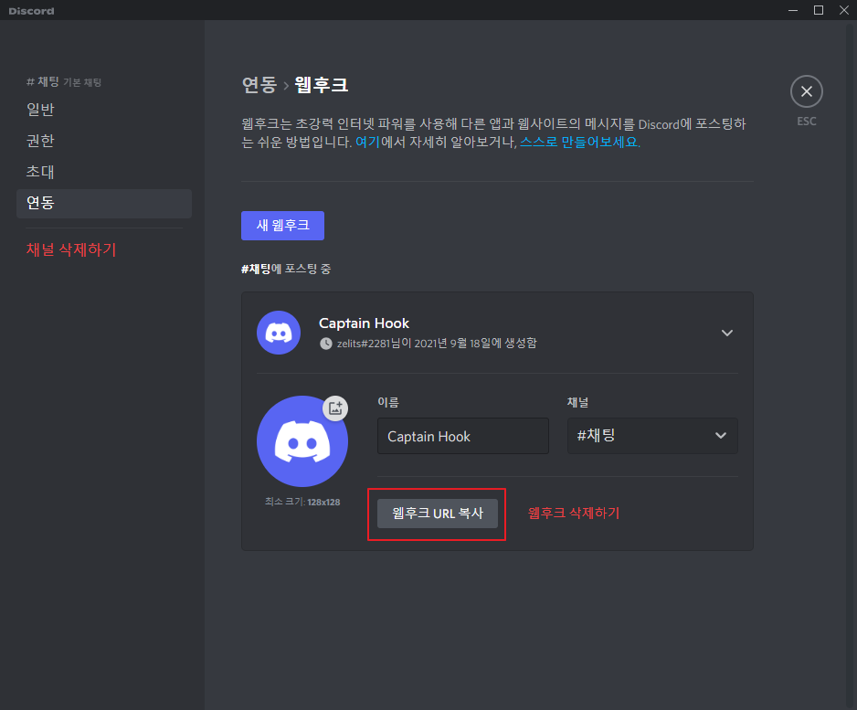 디스코드 웹훅 으로 메세지 보내기 입니다