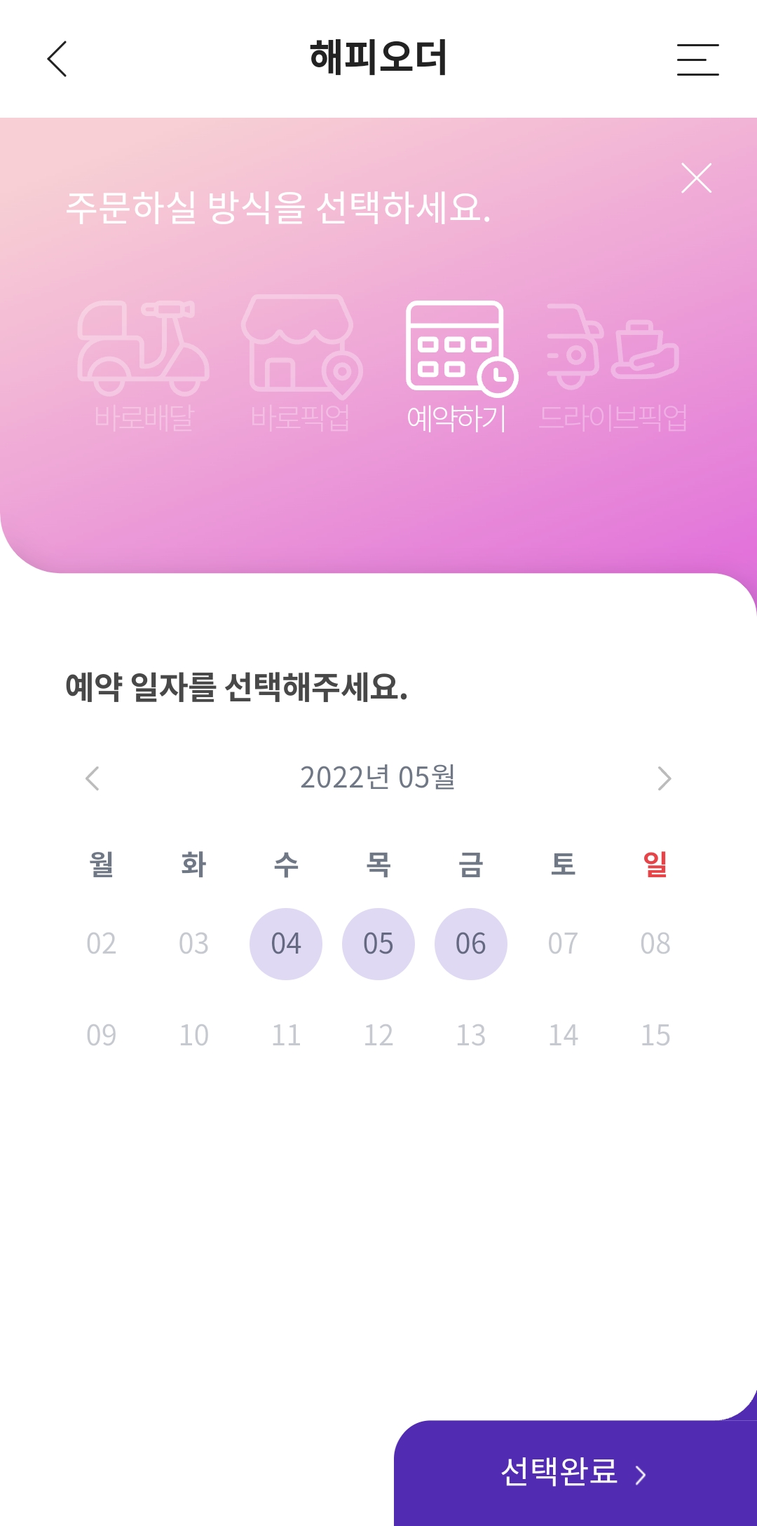 날짜는 선택 가능할 날짜가 5/4 ~6 일까지 입니다