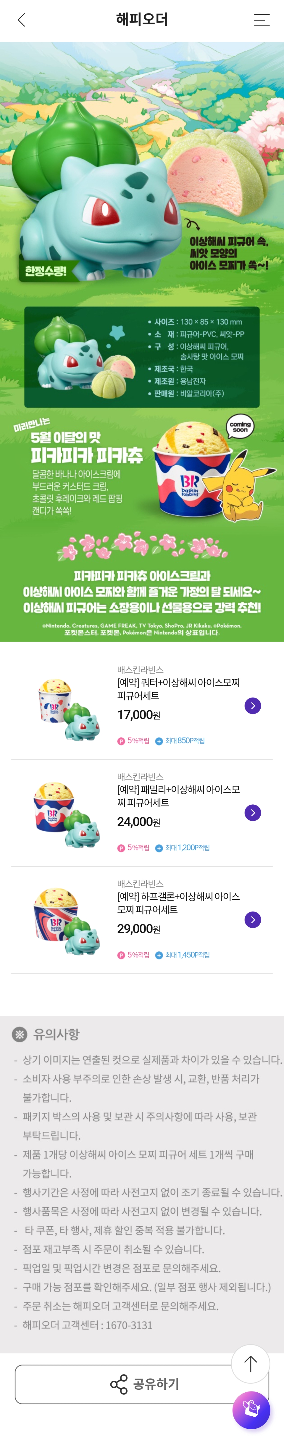 베스킨라빈스 베라에서 포켓몬 새로운 피규어를 내놨습니다.