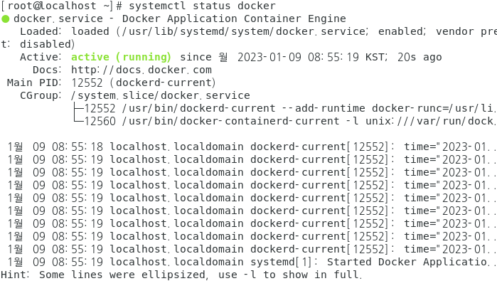 위 커맨드 입력 후 docker 가 실행되어있는지 확인 가능하다..