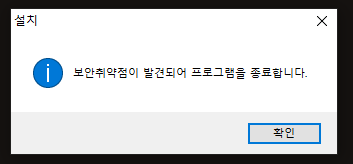 아래와 같이 "보안취약점이 발견되어 프로그램을 종료합니다."