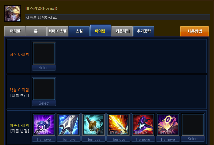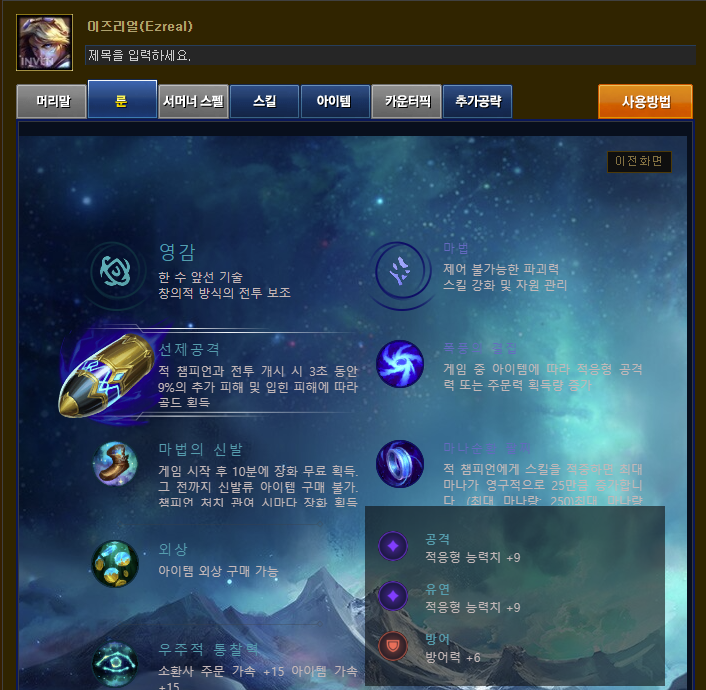 칼바람 원펀맨 AP 이즈리얼 템트리 및 룬입니다