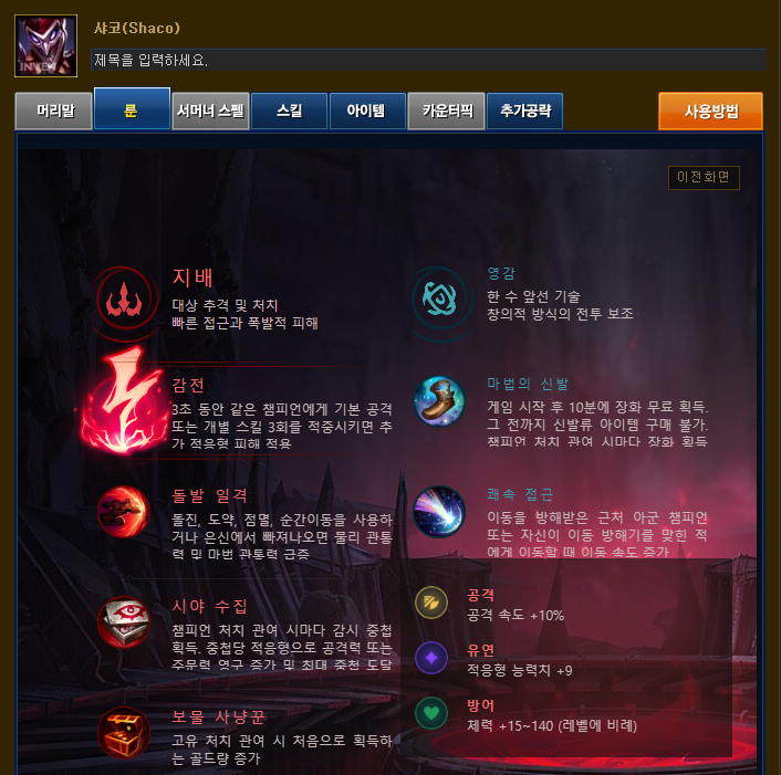 칼바람 AP 사코 템트리 및 룬입니다