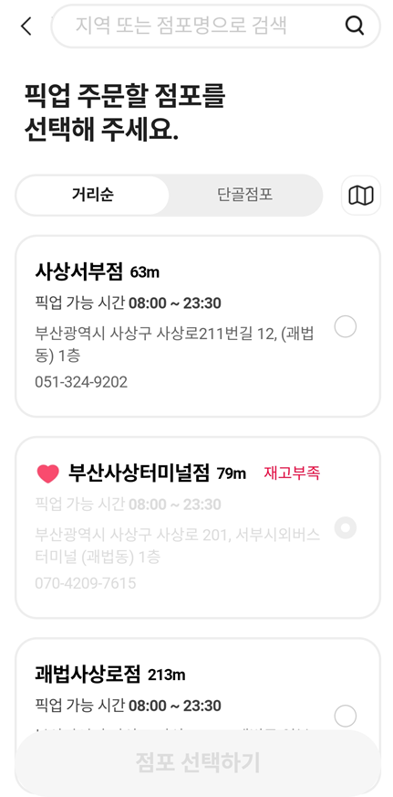 일단 점포를 선택하고나면