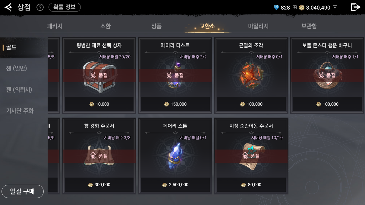 위 처럼 상점에서 매주 1개씩 살수 있습니다