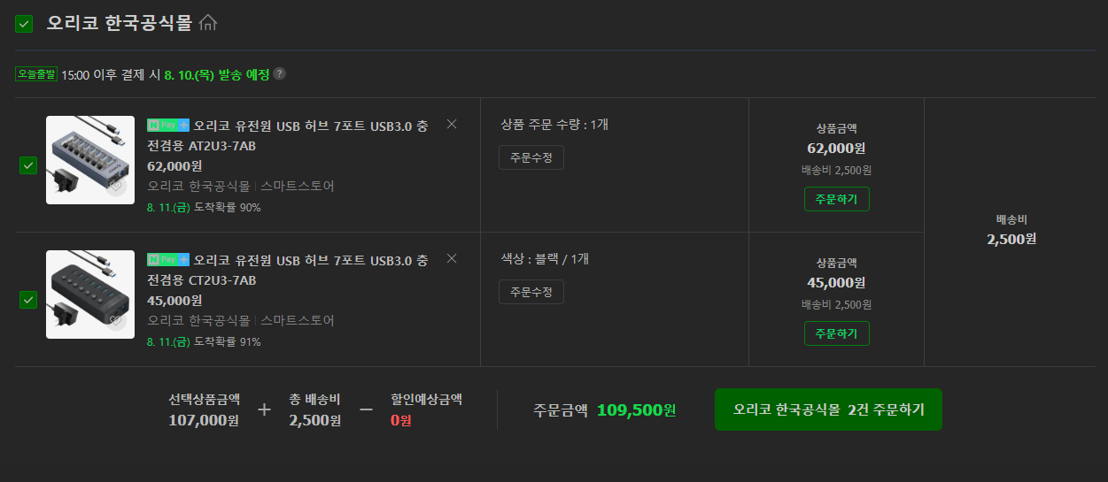 오리코 유전원 USB허브 종류 차이점을 찾아봤습니다.