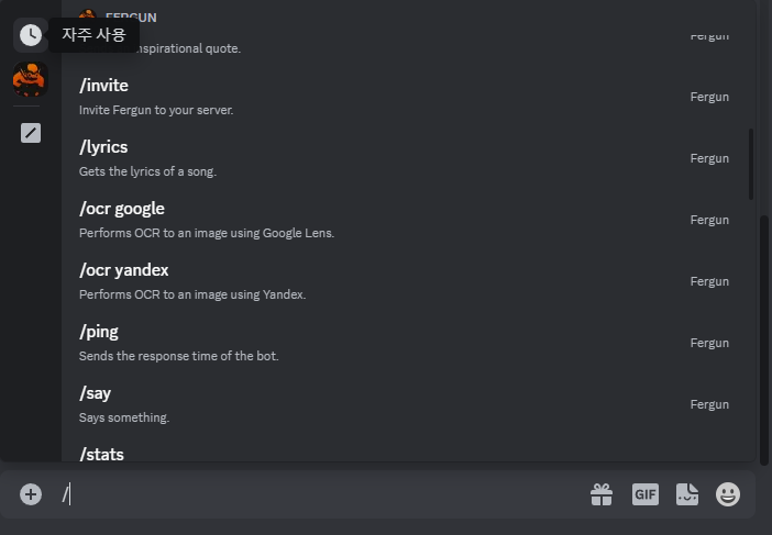 그중에 첫번째 봇인 Fergun 을 Invite 한다음