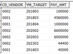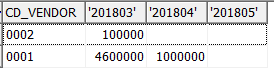 위 코드처럼 테이블값이 들어있을 경우 피벗예제는 아래와 같다.