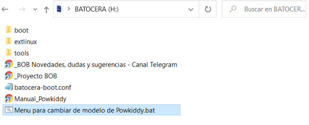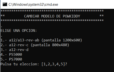 폴더안에 Menu para cambiar de modelo de powkiddy.bat 파일을 실행한다.