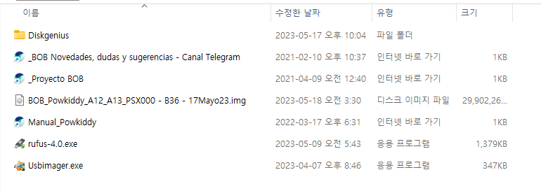 그리고 압축을 풀면 아래처럼 나오며 rufus 프로그램을 이용하여 img 파일을 sd카드에 밀어 넣으면 된다