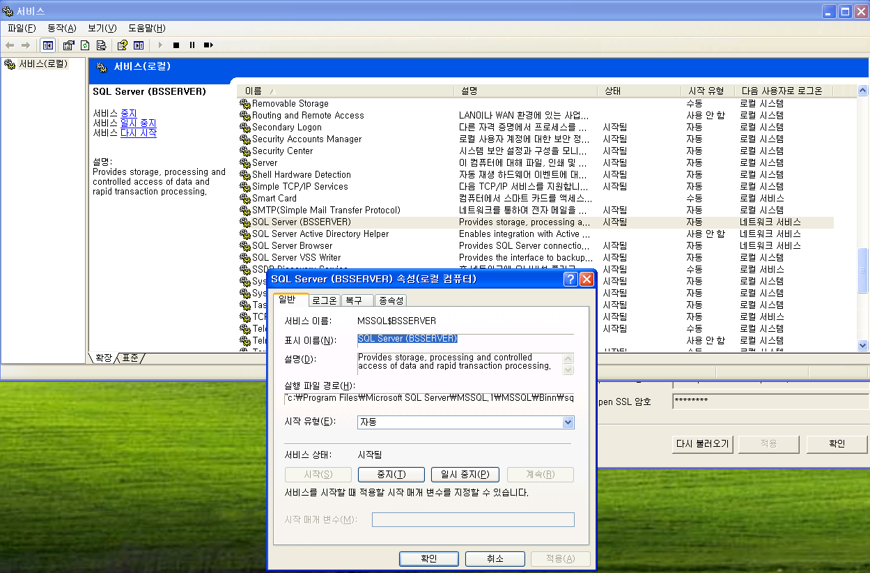 mdf, LDF 파일 복사가 끝났으면 서비스에서 SQL Server를 다시 시작 하면 됩니다