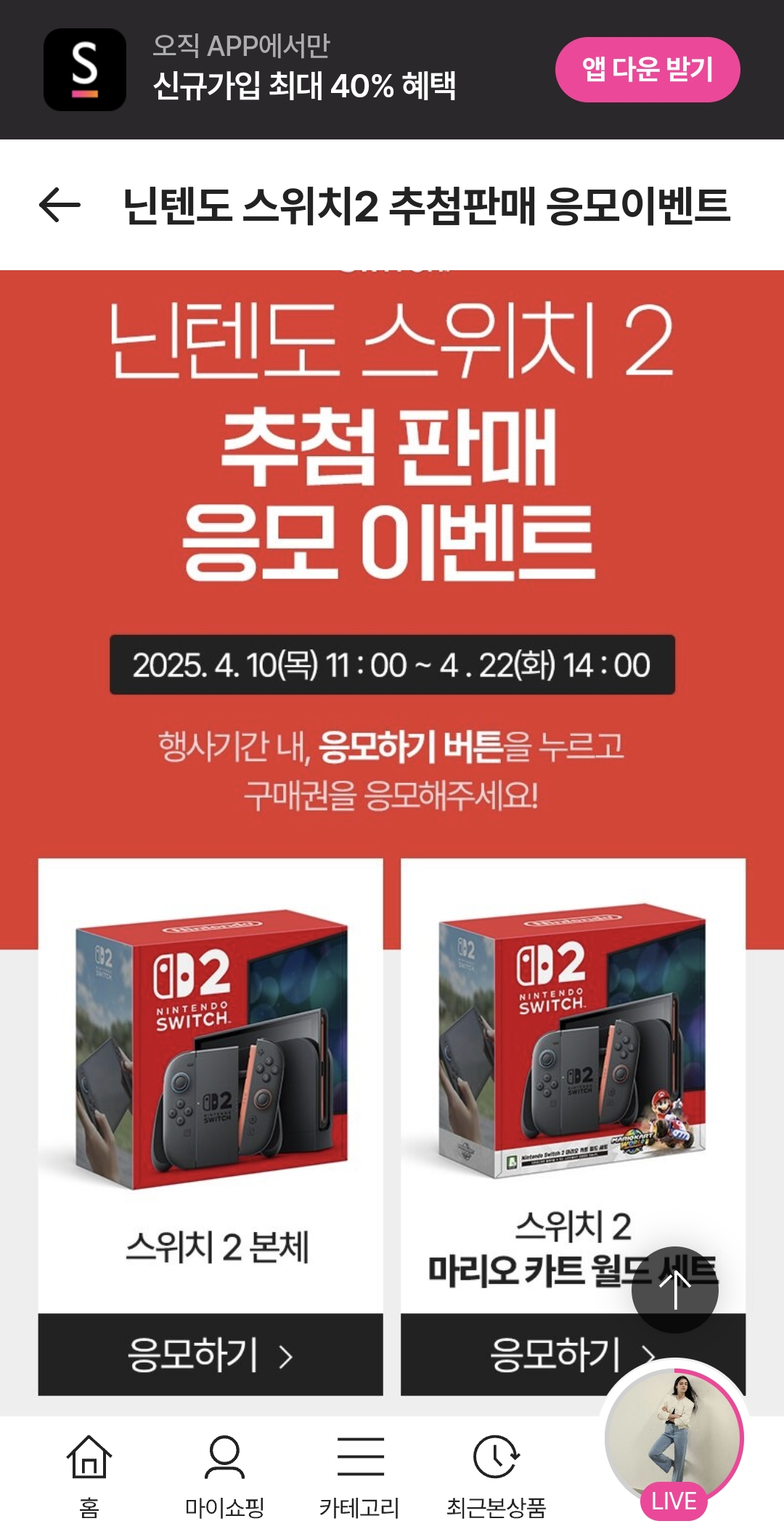 위 사이트는 PC에서는 잘 안되어서 모바일에서 응모하세요