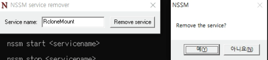 아래 사진처럼 서비스명이 RcloneMount 라면
