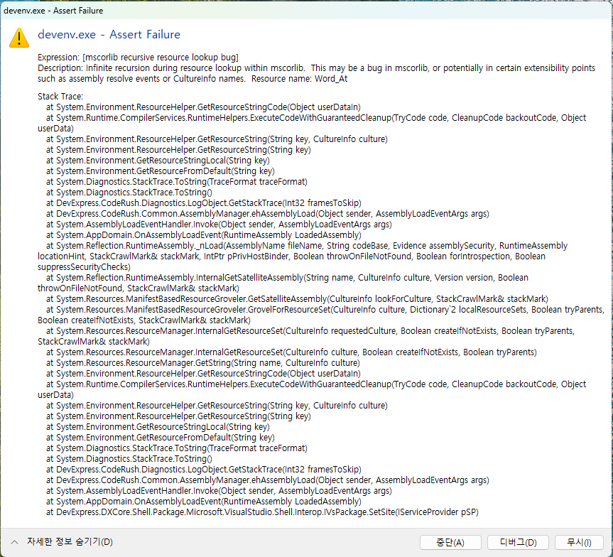 devenv.exe - Assert Failure 오류 해결
